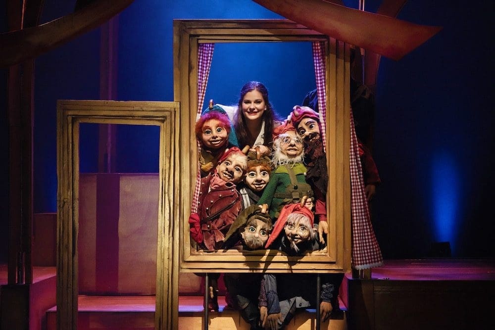 Wanneer we aan Sneeuwwitje denken, plopt spontaan de variant van de Disney prinses naar boven. Daar kunnen we niks aan doen, dat is gewoon zo gegroeid. Ook bij de kinderen, want ik zie menig meisje in een geel/rode jurk door het theater dartelen. Theater Terra doet in deze musical een poging om een ander personage centraal te zetten, namelijk één van de zeven dwergen, Zeventje welteverstaan. Het is een verfrissende twist, maar zonder al te veel te verklappen, is het toch Sneeuwwitje die de show steelt.