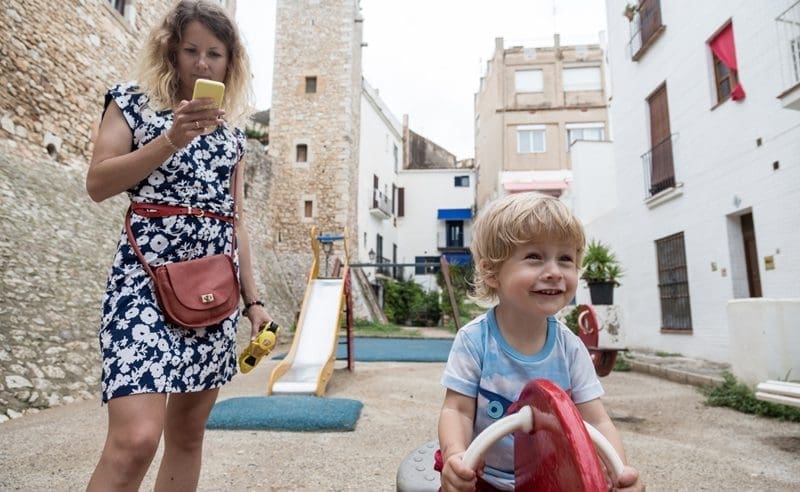 En nee natuurlijk niet, ik laat haar niet los als een losgeslagen tijger. Ik corrigeer en geef richting waar nodig, bijvoorbeeld wanneer ze het zand op het hoofd van jouw kind gooit. Maar geloof me, corrigeren hoeft niet bij elke freaking beweging of misstap. En terwijl mijn kleintje speelt, ontdekt en doorademt, kom ik ook even op adem. Starend naar mijn telefoon. Even checken of ik nog iets nutteloos gemist heb.