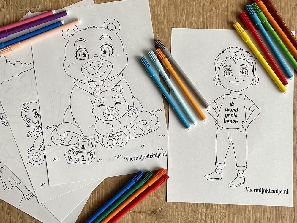 Geef je kleintje één van onze “ik word grote broer” of “ik word grote zus” kleurplaten en kleur de kleurplaat samen in. Op deze manier kun je jouw zoon of dochter alvast langzaam voorbereiden en heb je echt even quality-time samen. En kleuren is nog leuk ook!