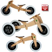 Mijn dochter kreeg deze loopfiets toen zij 1 jaar werd. Het was voorjaar, ze kon net aan lopen en jarig en dus begon onze zoektocht naar een (loop)fiets. Voor ons was toen alles nog nieuw op het gebied van loopfietsen, fietsen en karretjes. Maar mijn oog viel gelijk op deze gave fiets. Eigenlijk in eerste instantie omdat er van die vrolijke prints op zaten, maar ook omdat dit de enige loopfiets was met drie wielen. Perfect voor een 1 jarige toch? Het is overigens ook bijzonder praktisch voor kinderen met een minder ontwikkeld evenwichtsgevoel. Inmiddels is mijn dochter 4 jaar en heeft zij die drie wielen niet meer nodig en staat het zadel op de hoogste stand, maar ze sjeest nog elke dag rondjes op haar Wishbone bike. En dat terwijl de hele tuin inmiddels vol staat met een heel wagenpark aan fietsen en wagentjes.
