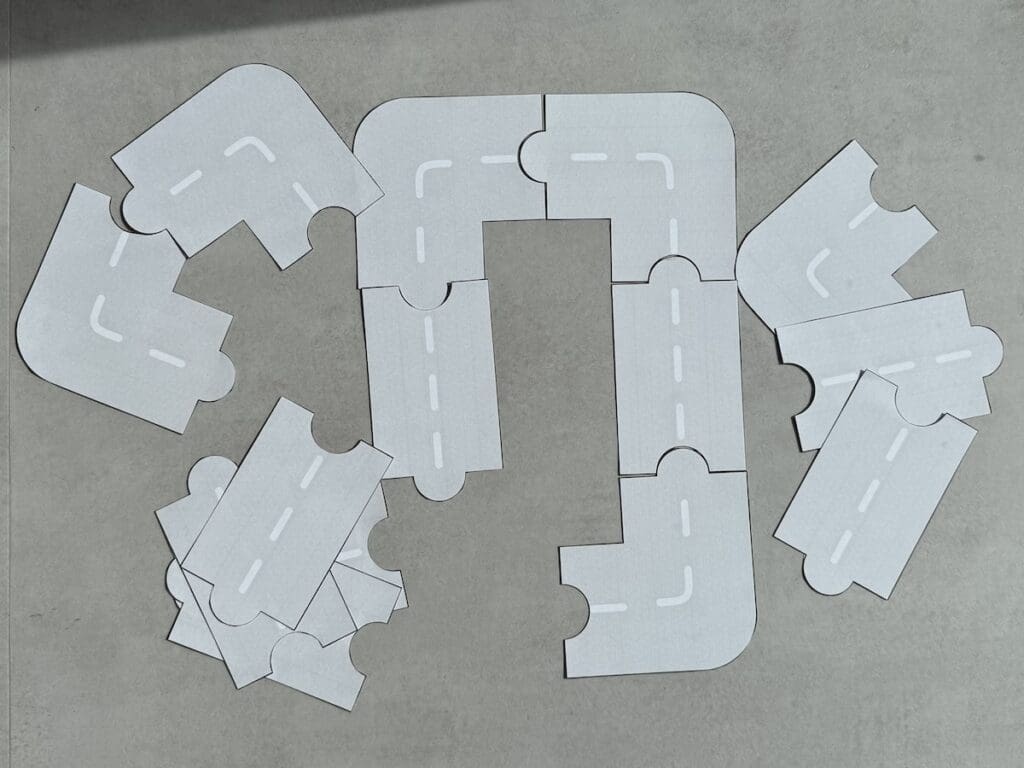 Knip, kleur en plak je eigen wegennetwerk! Laat kinderen een route maken voor een bus, auto of fiets.