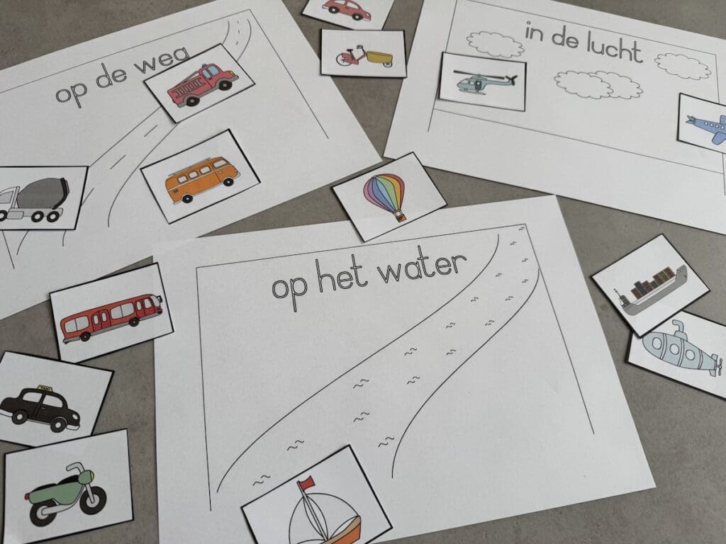 Is het een vliegtuig, boot of auto? Kinderen sorteren de voertuigen op hun omgeving: lucht, water of weg. Visueel, educatief en super leuk.