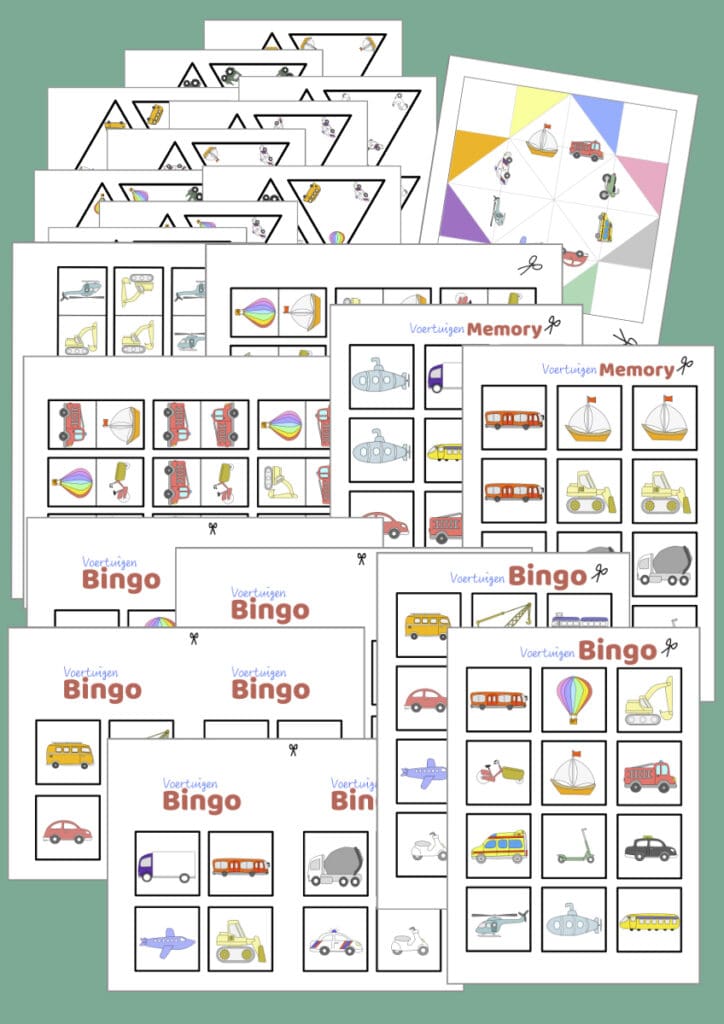 Voertuigen bij elkaar zoeken. Oefent het geheugen én woordenschat.