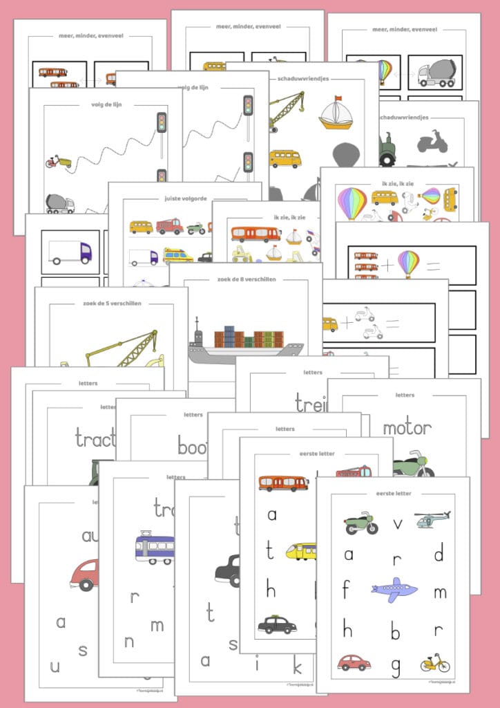 Ben je op zoek naar een compleet en speels lespakket rondom het thema voertuigen, perfect voor peuters en kleuters? Dan is dit printable pakket voor voorschoolse educatie (VVE) precies wat je nodig hebt! Met meer dan 40 pagina’s aan educatieve werkbladen, spelletjes en creatieve opdrachten sluit dit pakket naadloos aan bij de ontwikkeling van jonge kinderen. Het combineert spel, leren én ontdekken in één overzichtelijk en thematisch geheel.