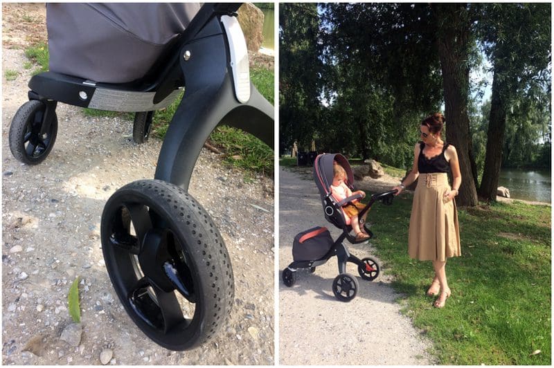 1. never nooit meer luchtbanden: herken je het volgende? Je loopt ergens en ineens zakt je wagen naar 1 kant waardoor je kind en kilo’s boodschappen wanhopig in evenwicht probeert te houden. Klapband! Je bent een aantal kilomter van huis en niet in het bezit van hulplijnen. De dichtstbijzijnde fietsenmaker zit een paar straten verderop en de baby moet hoog nodig een voeding….Nou ik dus wel… De wielen van Stokke zijn lichter, sterker en duurzamer, passend bij de kwaliteit en functionaliteit van een kinderwagen van Stokke en *maakt een vreugdedansje* je hebt geen pompje nodig (die altijd kwijt is)!