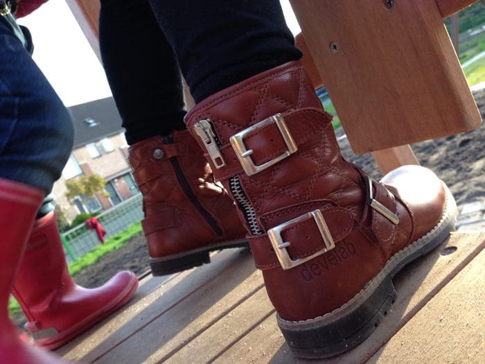 Maar een kinderschoen moet ook geschikt zijn om mee buiten te spelen. De eisen als kwaliteit en draagcomfort staan hoog. En hoewel de zesjarige even moest wennen toen ze de eerste keer haar nieuwe schoenen aantrok (“Ze zitten zó straaaaak!!”), was ze na een half uurtje buitenspelen haar oude schoenen al helemaal vergeten.