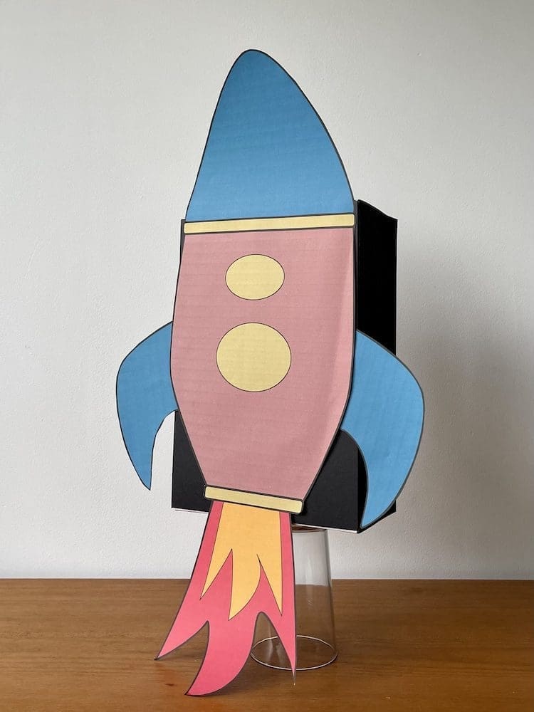 Het maken van een ruimtevaart surprise klinkt misschien heel ingewikkeld. En eerlijk is eerlijk, als je ervoor kiest om met papier maché en dat soort knutselactiviteiten aan de slag te gaan, maak je jezelf het ook best ingewikkeld. Maar dat hoeft dus niet. Je kunt ook heel makkelijk een leuke raket surprise maken. Je hebt dan wel deze printable nodig. En dan heb je met een laag budget en binnen een handomdraai deze raket zo geknutseld.