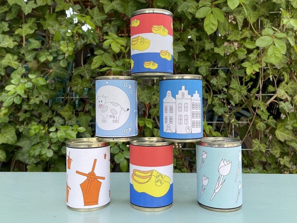 Om het blik gooien een extra oud Hollands tintje te geven, hebben we oud Hollandse etiketten voor de blikken gemaakt. Deze kun je heel simpel uitprinten en om de blikken heen plakken.