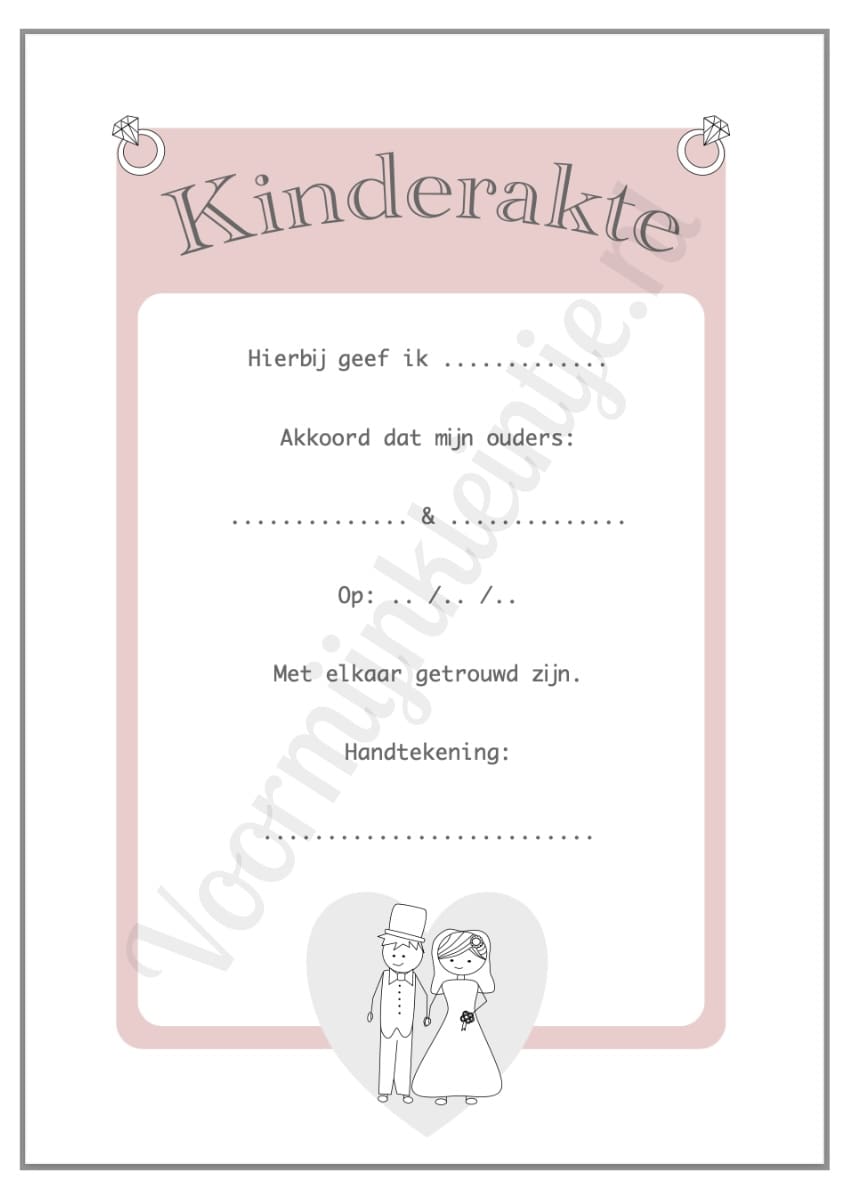 De kinderakte kun je hier downloaden en printen. We hebben drie verschillende designs, je kunt dus zelf kiezen welke kinderakte het beste bij jullie bruiloft past. Ook hebben we verschil in de teksten, alle drie kunnen gebruikt worden voor je eigen kind(eren), maar we hebben ze ook alle drie in een variant voor je neefje, nichtje, buurmeisje, enzovoorts.