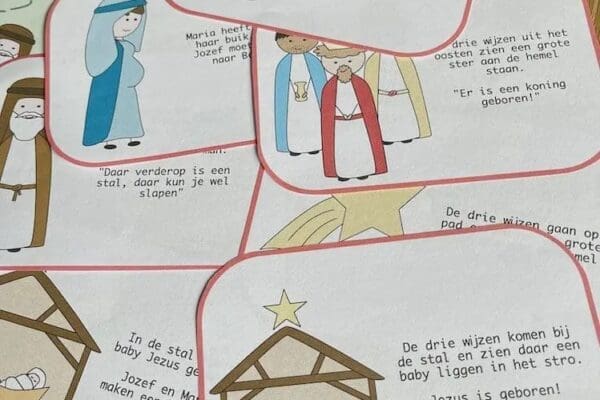 Het verhaal van de geboorte van Jezus wordt verteld in het Nieuwe Testament van de Bijbel. Maria en Jozef, een nederig paar, waren op weg naar Bethlehem voor een volkstelling. Bij hun aankomst was er geen plaats in de herberg, dus vonden ze onderdak in een eenvoudige stal. Daar bracht Maria, de maagd, Jezus ter wereld in een kribbe, omringd door engelen en herders die de blijde boodschap van zijn geboorte verkondigden.