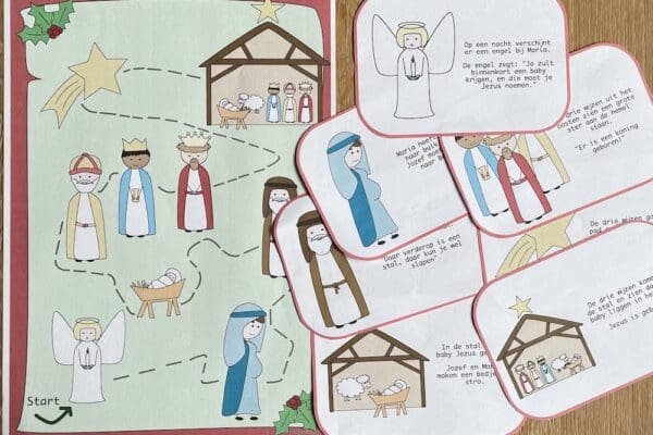 Het verhaal van de geboorte van Jezus wordt verteld in het Nieuwe Testament van de Bijbel. Maria en Jozef, een nederig paar, waren op weg naar Bethlehem voor een volkstelling. Bij hun aankomst was er geen plaats in de herberg, dus vonden ze onderdak in een eenvoudige stal. Daar bracht Maria, de maagd, Jezus ter wereld in een kribbe, omringd door engelen en herders die de blijde boodschap van zijn geboorte verkondigden.