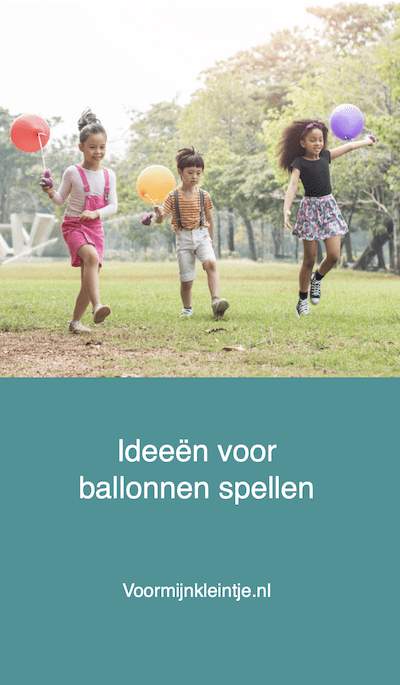 Een klassiek ballonnen spelletje! Wanneer je een kind een ballon geeft, gaat hij of zij vaak dit spelletje uit zichzelf al doen. De ballon zo lang mogelijk hoog houden, zonder de ballon beet te pakken of de grond aan te laten raken.