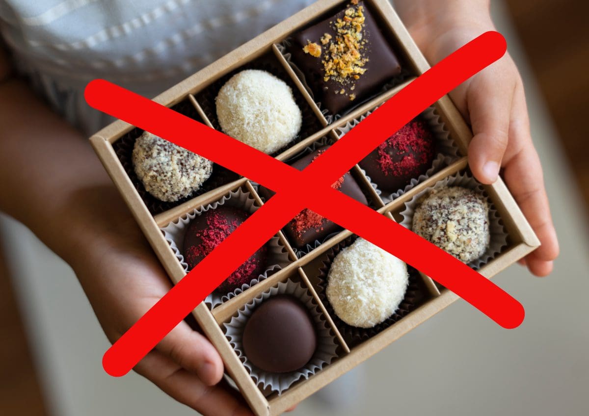 Al snel werd het volgende ‘nee bedankt cadeautje’ duidelijk. Chocolade! Ik dacht bij mezelf, ‘huh, hoe kun je geen chocolade willen!’ Maar blijkbaar krijgen juffen en meesters stapels chocolade. Zoveel dat je er beter een abonnement bij de sportschool bij kunt geven. Of zoals een ander grapt, ‘een fles Dreft erbij om al het vet te verwijderen’.