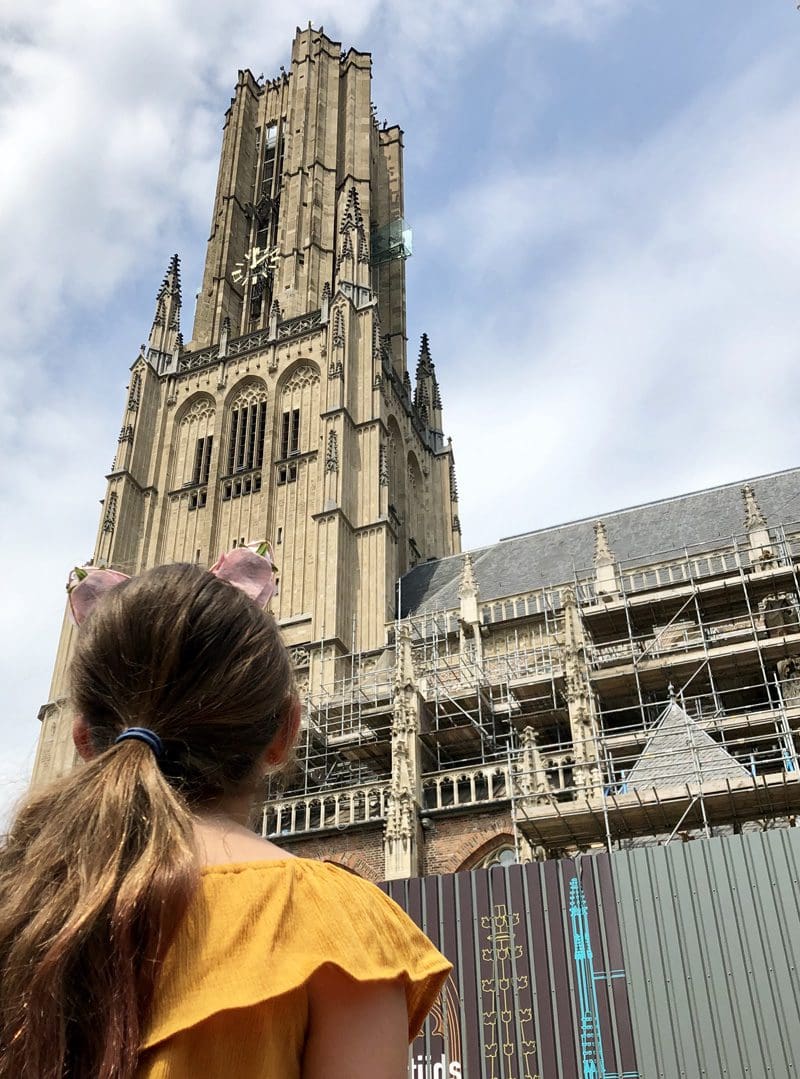 Wanneer we doorlopen, lopen we praktisch tegen de Eusebiuskerk aan. De kerk staat nog flink in de steigers, maar de toren is toegankelijk voor publiek. Van beneden af zijn ze al te zien, de glazen balkons. Mijn oudste dochter lijkt het wel tof om daarop te staan, maar de man krijgt beneden al bijna een paniekaanval bij het idee. Maar ik kan me zo voorstellen dat het uitzicht, mocht je zo heldhaftig zijn om te durven kijken, heel machtig is vanaf het glazen balkon.