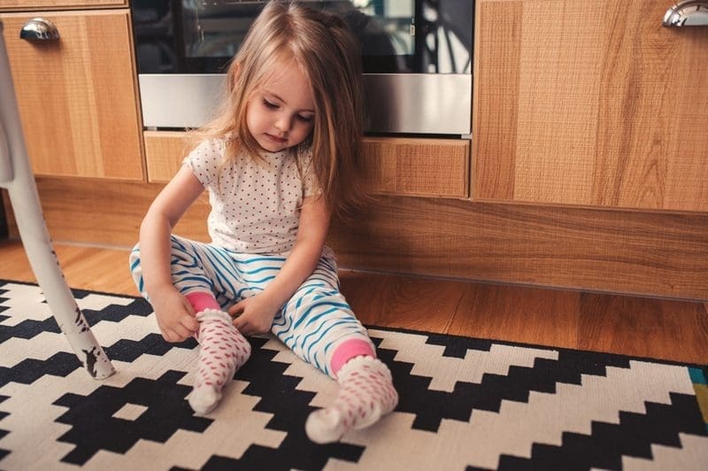 Als ik haar helemaal haar gang laat gaan wat aankleden betreft, wat ze overigens erg op prijs stelt (alles zelluf doen!), dan moet ik daar een decennium voor uittrekken. U begrijpt, dit is elke ochtend een discussie. Haar sokken, ze mag haar sokken zelf doen. Als de ingang van haar sok dan voor de 800ste keer tussen haar tenen blijft hangen, bied ik toch vriendelijk nogmaals mijn hulp aan. Uiteraard wordt dit geweigerd. Dit riedeltje begint nogmaals als ze aan haar schoenen begint.