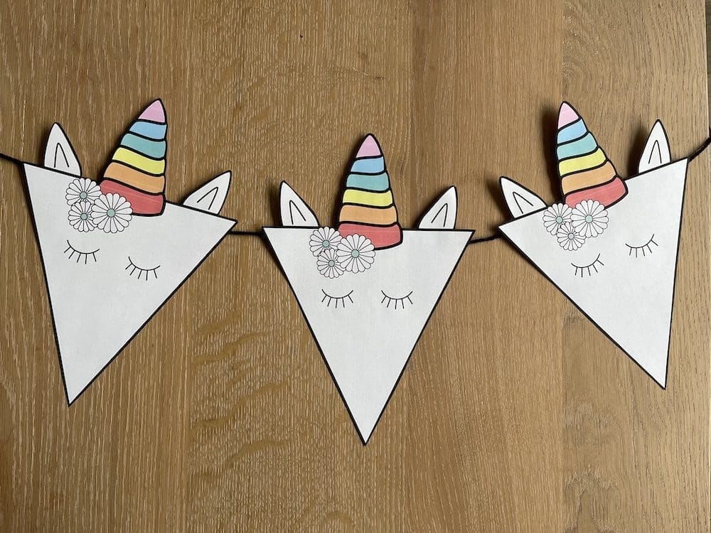 Met de juiste decoratie kun je het echte eenhoorn sfeertje creëren tijdens het kinderfeestje thuis. Dat moet zeker lukken met deze unicorn slinger die je zelf kunt printen. Het enige wat je nodig hebt is een printer, A4 papiertjes, een schaar, een touwtje en natuurlijk ons eenhoorn printable pakket.