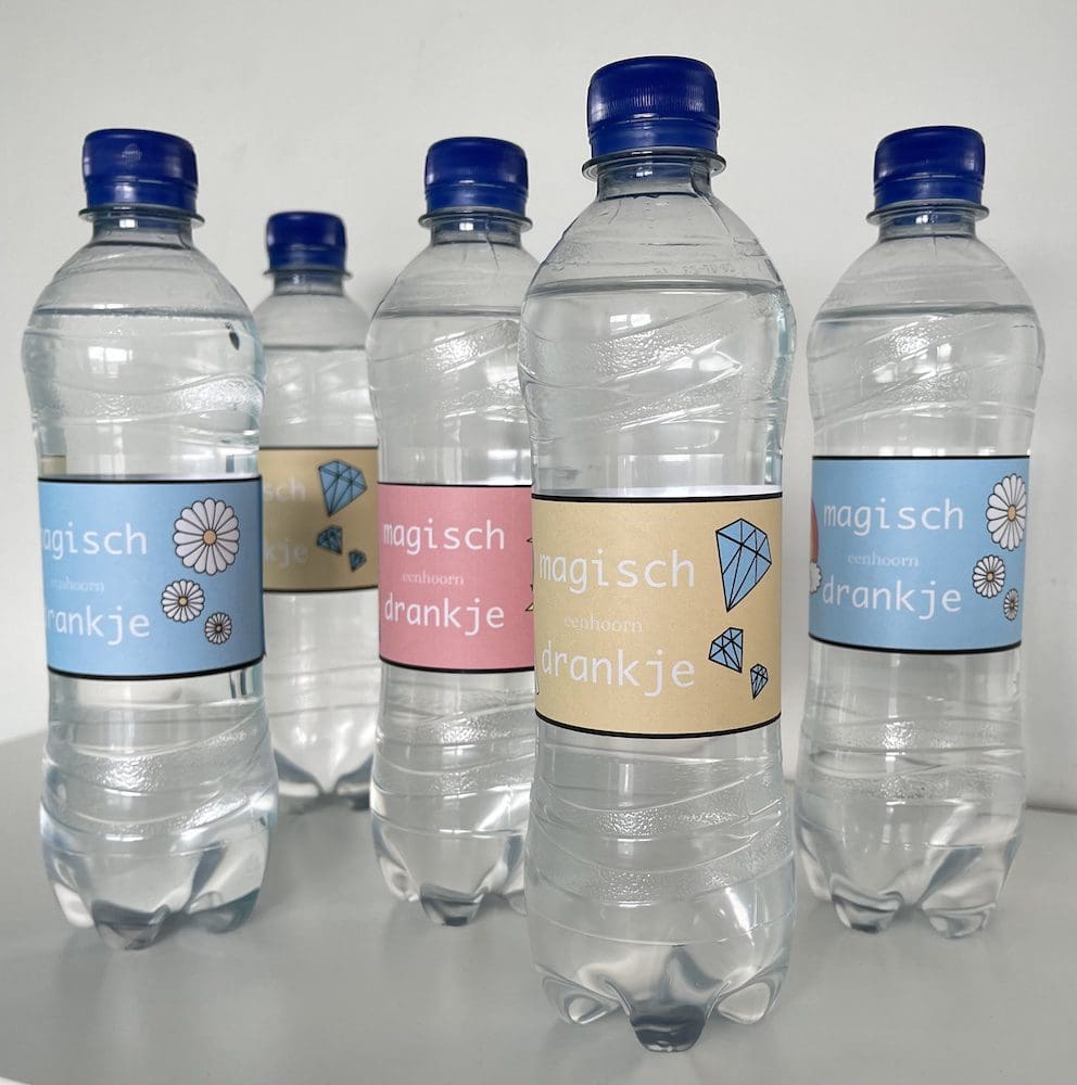 Inmiddels zijn de waterfles etiketten onmisbaar geworden in onze kinderfeestje printable pakketten. Dus we hebben de waterfles etiketten ook in magische eenhoorn stijl gemaakt en toegevoegd aan het pakket om zelf te printen.