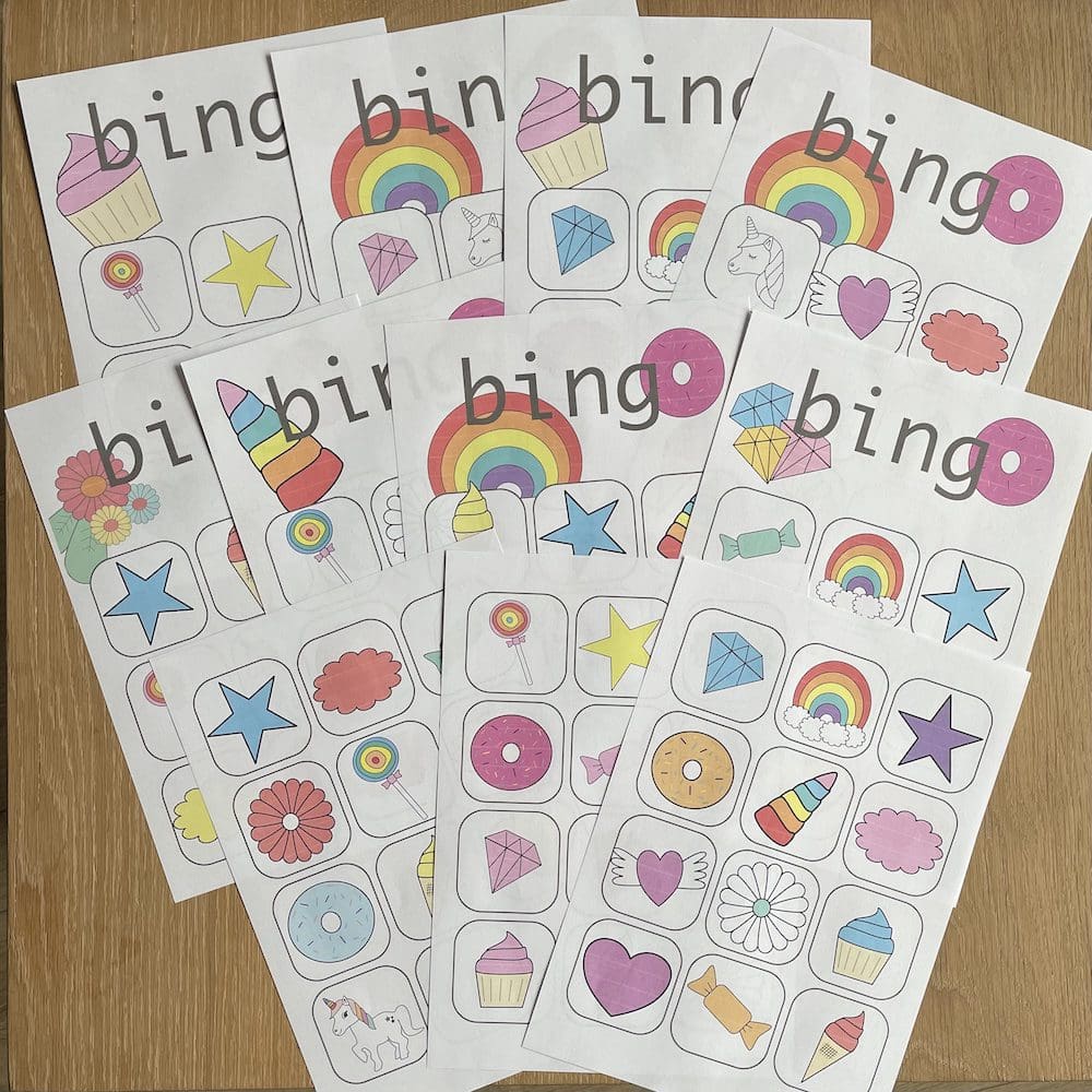 De eenhoorn bingo bestaat uit acht verschillende eenhoorn bingo kaarten en 34 kaartjes (om uit te knippen) met de unicorn symbolen. Deze kaartjes hussel je goed door elkaar en vervolgens maak je een stapel. Je legt het kaartje met de eenhoorn bovenop de stapel (deze heeft iedereen namelijk op z’n bingokaart staan). Vervolgens pak je steeds een kaartje van de stapel uitgeknipte kaartjes. De kinderen kijken of ze het symbool in de juiste kleur, op hun bingokaart hebben staan. Zo ja, dan mogen ze deze wegstrepen. Wie als eerste alle symbolen weg heeft gestreept, heeft bingo!