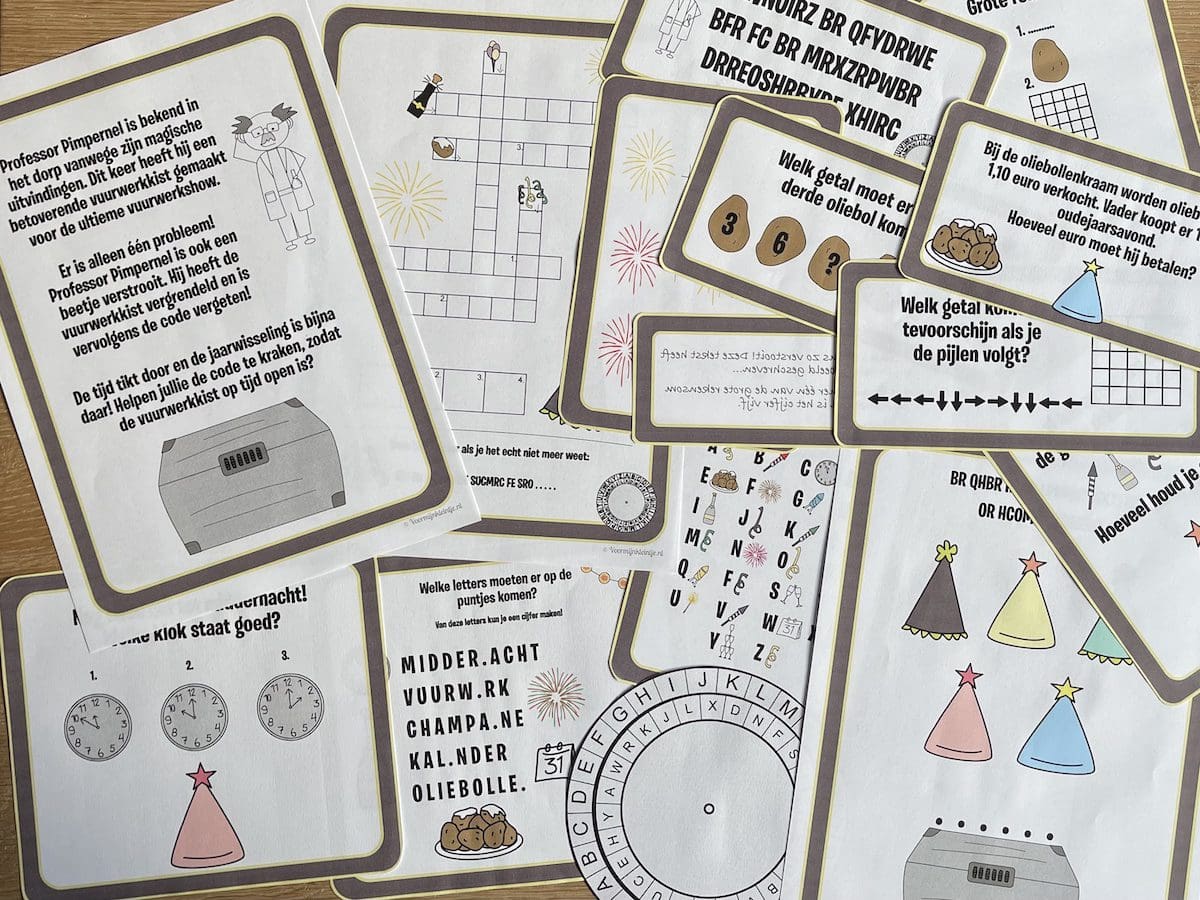 Wakker blijven!!! Als je op zoek bent naar een leuke manier om de kleintjes wakker te houden op oudejaarsavond, dan ben je hier op het juiste adres. We hebben namelijk een toffe Oudejaarsavond Escape Room gemaakt! We hebben een versie voor kinderen van 7 tot en met 9 jaar én een iets uitdagendere versie voor kinderen van 10 tot en met 12 jaar.