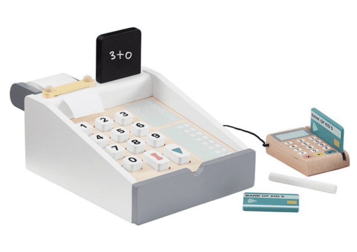 Naast alle houten etenswaren om mee te spelen, zijn er ook nog andere speelgoedstukken voor je kleintje. Dan heb ik het natuurlijk over een keukentje. Het keukentje van IKEA is een aanrader! En ook leuk om de speelkeuken te pimpen. Maar ook een winkelkraam, of een zithoekje (tafel en stoeltjes) zijn leuke speelitems voor in de (speel)kamer. Echter, waar ik nu op doel, zijn de bijpassende accessoires die een mooie aanvulling zijn op het houten voedsel. Denk aan een weegschaal, een mixer en een houten kassa voor in de winkel.