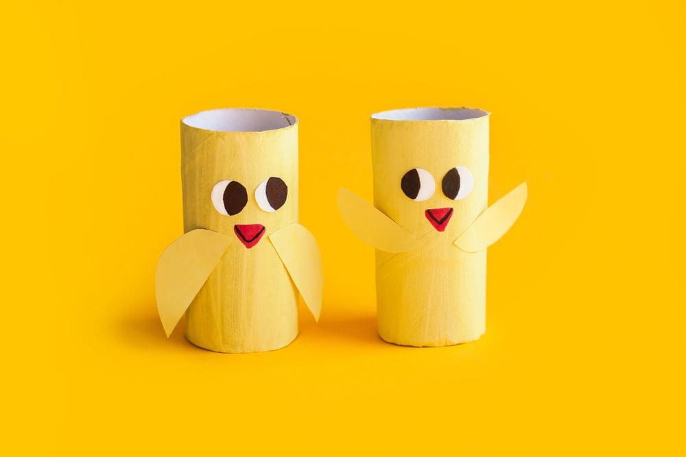 Of de eierdopjes gemaakt van lege wc rolletjes zoals hieronder is afgebeeld. Ook dit zijn leuke kunstwerkjes voor kinderen om te maken voor Pasen.