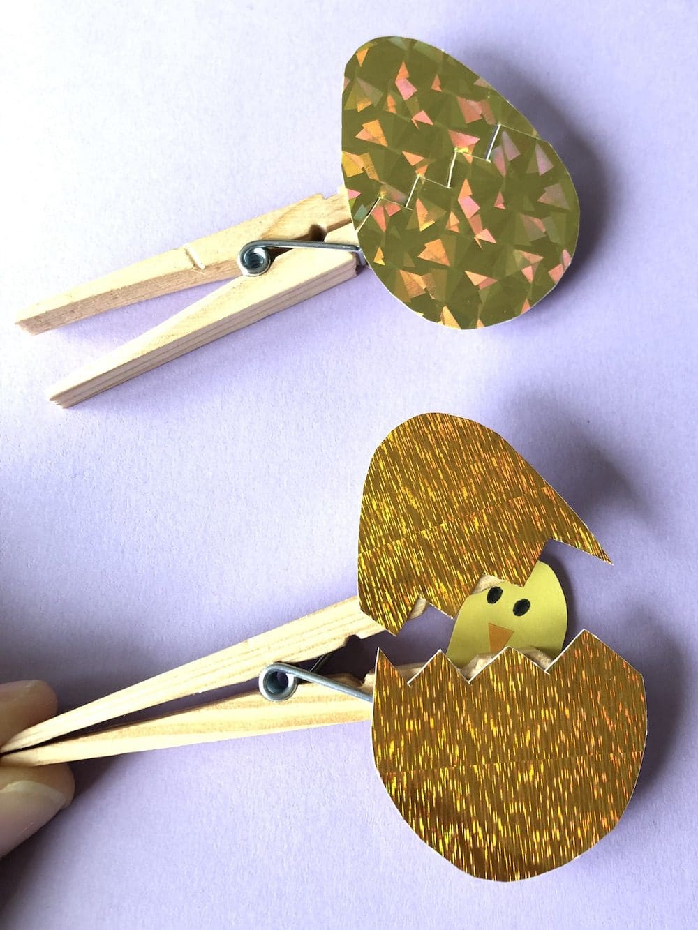 Bij Pasen horen nu eenmaal kuikentjes. Maar voor een leuke paasknutsel hoef je niet ver te zoeken! Deze paaskuikens in een ei op een wasknijper zijn makkelijk om te maken en hebben een onwijs leuk resultaat.