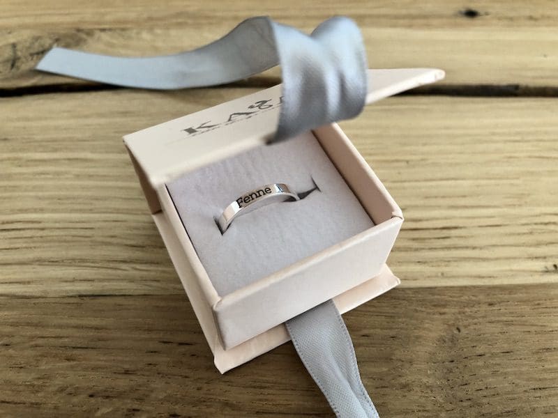 Voor mijn oudste dochter is de tijd van verstelbare kinderringetjes voorbij. Sterker nog, haar ringmaat komt bijna overeen met mijn ringmaat! Waar blijft de tijd? Haar oog viel op een ring waar je een tekst, naam, woord of datum in kunt laten graveren. Een typisch voorbeeld van een sieraad waarbij het niet alleen om de versiering gaat, maar waar een sieraad een symbolische of emotionele betekenis krijgt. In de 925 sterling zilveren ring heeft ze haar eigen naam laten graveren en resultaat is erg leuk! En ik weet nu al, dit smaakt natuurlijk naar meer! Maar volgens mij is deze ring ook perfect om te combineren met andere stapelringen.
