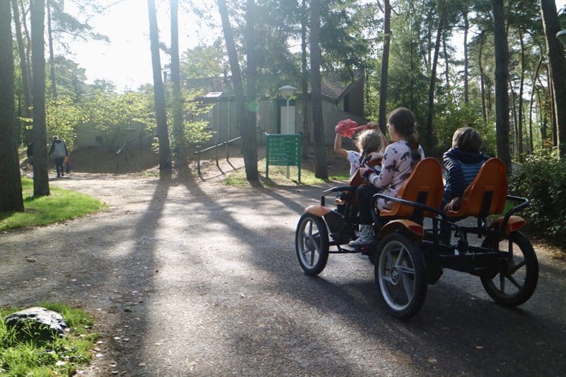 Het vakantiepark ligt letterlijk tussen de vennen in het bos. En zoals ik al zei, in de herfst zijn de kleuren prachtig. Daarom was een ritje op de familieskelter een heel goed idee!