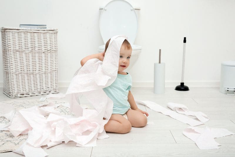 11.30: Plak stickers. Overal. Pak stiekem een potje klei en ga onder de tafel op het kleed kleien. Pak een pen en maak een mooie tekening. Op de muur. Pak één van de laatste rollen wc papier en rol deze zo ver mogelijk uit. Kijk onschuldig en verbaasd wanneer mama erachter komt.