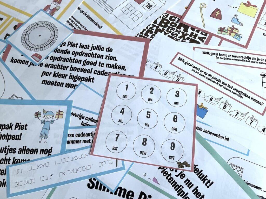De voorbereiding is heel simpel, je hoeft de printables alleen maar te printen! En de printables met een schaartje knip je uit. Verder leg je de stapel printables op elkaar. Bovenop komt geel, dan rood, dan blauw en je eindigt met groen waar ook het Pietendiploma tussenzit. Want wanneer alle opdrachten goed gemaakt zijn, overhandigt Coole Piet het enige echte Slimme Pietendiploma.