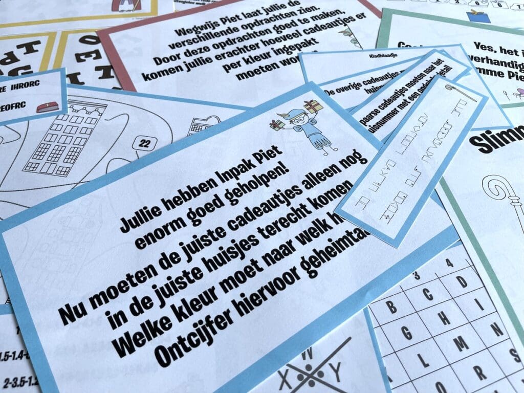Het duurt ongeveer 20-45 minuten (afhankelijk van de leeftijd van de spelers). Je kunt de opdrachten ook in groepjes laten maken, dan adviseren we maximaal 4 kinderen per groepje. Zijn er meer kinderen aanwezig? Dan kun je de opdrachten meerdere keren uitprinten en de groep in kleinere groepjes verdelen. En dan print je het Pietendiploma natuurlijk ook meerdere keren uit.