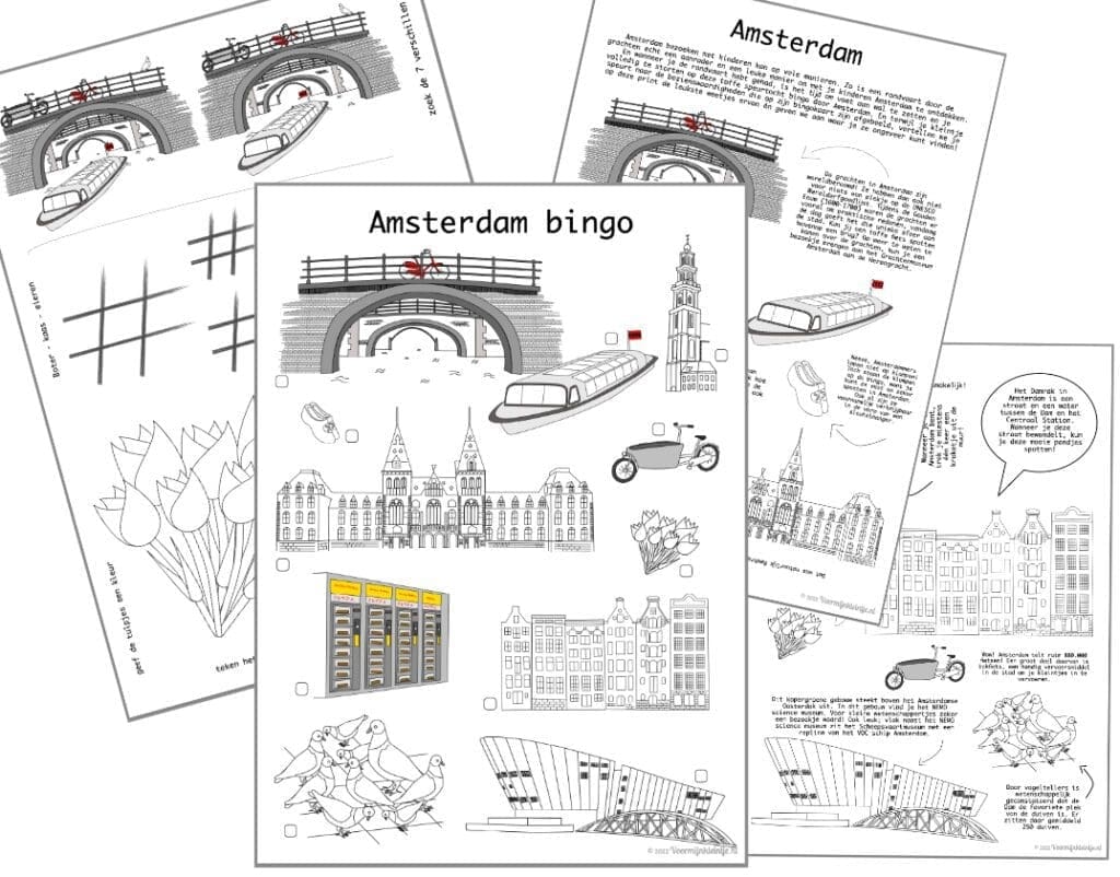 - Bonus: een blad met spelletjes voor als je ergens gaat eten in Amsterdam (1x A4 formaat)