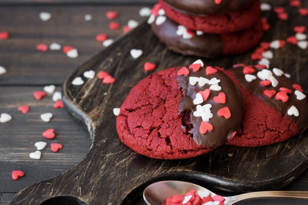 Red velvet koekjes zijn natuurlijk ook leuke koekjes om te maken voor Valentijnsdag! Het super lekkere recept van Red Velvet koekjes vind je hier.