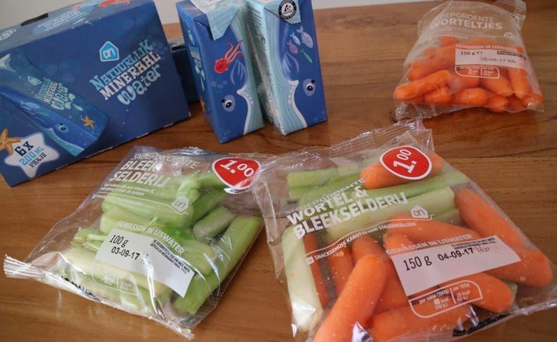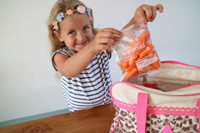 In de lunchtrommel zitten boterhammen en soms een stuk komkommer. Sinds kort heeft Albert Heijn makkelijke snackgroenten. Favoriet zijn de fijn geschrapte worteltjes en de rode paprika. Deze zijn al voorgesneden en verpakt, daarom lekker makkelijk om mee te geven.