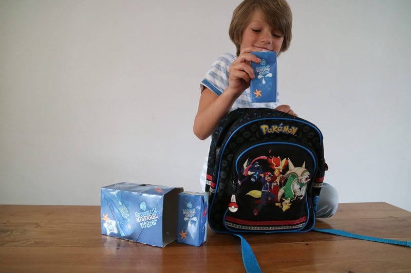 Elke dag dus een lunchtrommel, een 10-uurtje en een drinkbeker met sap en een drinkbeker met water. En het liefst zien mijn kleintjes het Wally de Walvis waterpakjes van AH in hun schooltas.