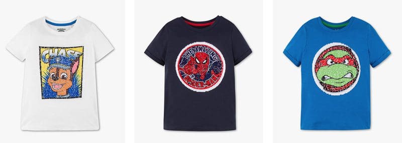 De superhelden hebben ook weer hun plekje op de omkeerbare pailletten shirts gevonden! Onder ander Paw Patrol, Spiderman en De Ninja Turtles wrijfshirts zijn verkrijgbaar bij C & A. Bestellen >>