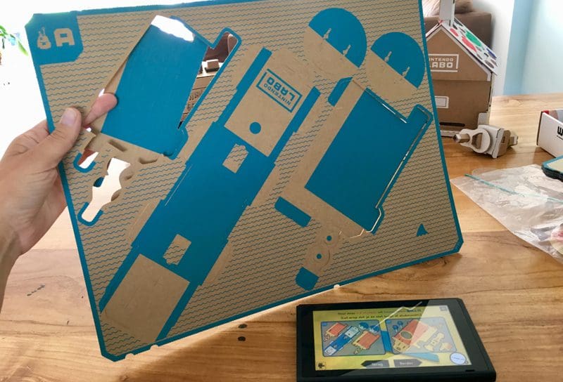 Goed, de instructies op het scherm van de Nintendo Switch zijn dus duidelijk. En wanneer je een beetje lezen kunt, zoals mijn zevenjarige, wordt het zelfstandig bouwen van de Nintendo Labo bouwpakketten écht een fluitje van een cent.