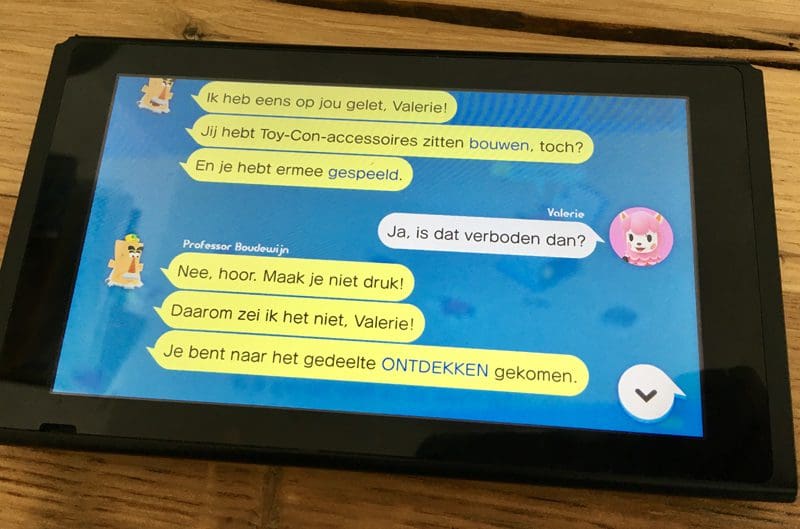 In ‘ontdekken’ word je onderdeel van een team. Het team van Toy-Con-onderzoekslab. Simpel gezegd ontdek je hier hoe de Toy-Cons precies werken. Maar ook hoe je Nintendo Labo gebruiken en pimpen kunt én eventueel kunt repareren. Je kunt zelf zo ver gaan dat je de Toy-Cons herprogrammeert en de verschillende bouwpakketten met elkaar laat interageren. Echter zijn mijn kleintjes zo ver nog niet.