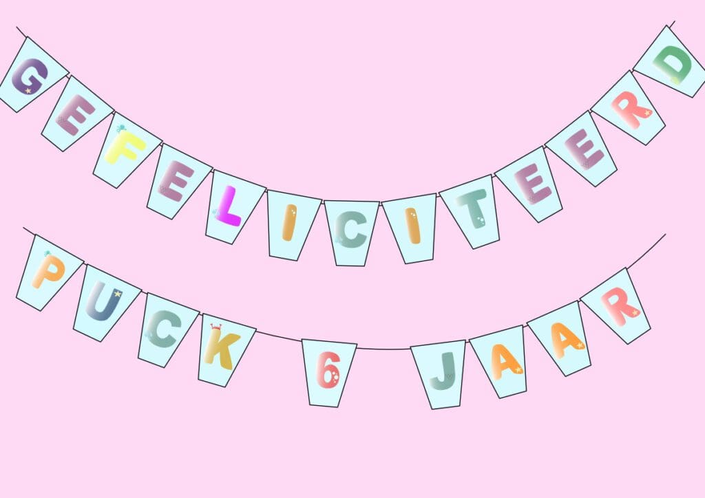We raden ook aan om de vlaggetjes voor de zeemeermin slinger op wat steviger papier af te drukken. Zo krijg je echt een mooie slinger voor een verjaardag!