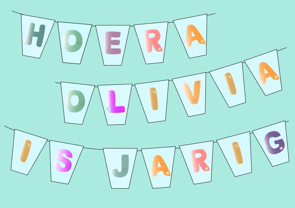 Doordat je alle letters en cijfers zelf kunt printen, kun je de zeemeermin slinger helemaal personaliseren voor een verjaardag. Denk aan: ‘Hierdepiep Hoera Olivia is jarig’ of ‘Gefeliciteerd Puck 6 jaar’. Doordat de cijfers er ook bij zitten, kun je gemakkelijk de leeftijd van je kleintje aan de slinger hangen. Hoe dan ook, je kunt het zo gek niet bedenken, want alle letters en cijfers kun je zoveel printen als je wil. Je komt dus nooit een letter of cijfer tekort voor deze zeemeermin slinger!