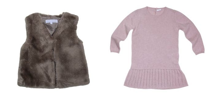 Ook komende winter zijn de bont en teddy gilets nog helemaal hip. Deze van het Franse merk ‘Tartine et Chocolat’ is gemaakt van acryl imitatie bont (€99,95). Het Italiaanse merk Il Gufo weet elk seizoen weer een mooie collectie neer te zetten met eenvoud en kwaliteit als uitstraling. Dit zachte en fijn gebreide jurkje (€116,95) is een must-have deze winter.