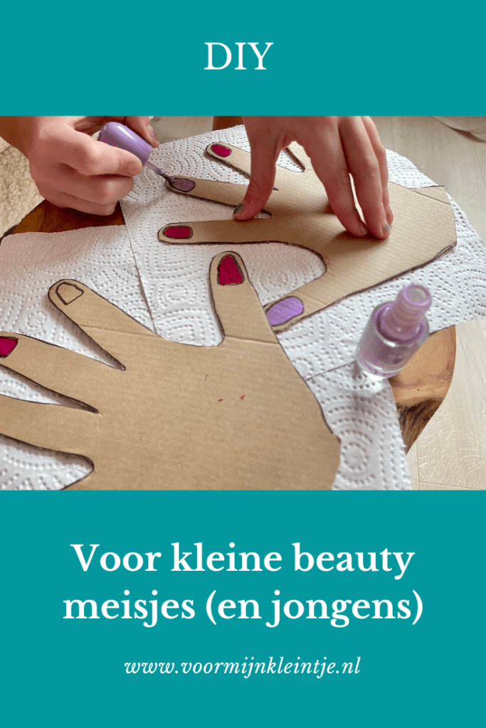 Nu kun je natuurlijk keer op keer je nagels laten lakken door je kleintje. Maar uit ervaring weet ik inmiddels dat iedere keer nagellak erop, nagellak eraf, niet heel lekker is voor je nagels. Daar is dus een heel simpele en leuke oplossing voor. Je hebt alleen maar een stuk karton, een stift, een schaar en natuurlijk een potje nagellak nodig.