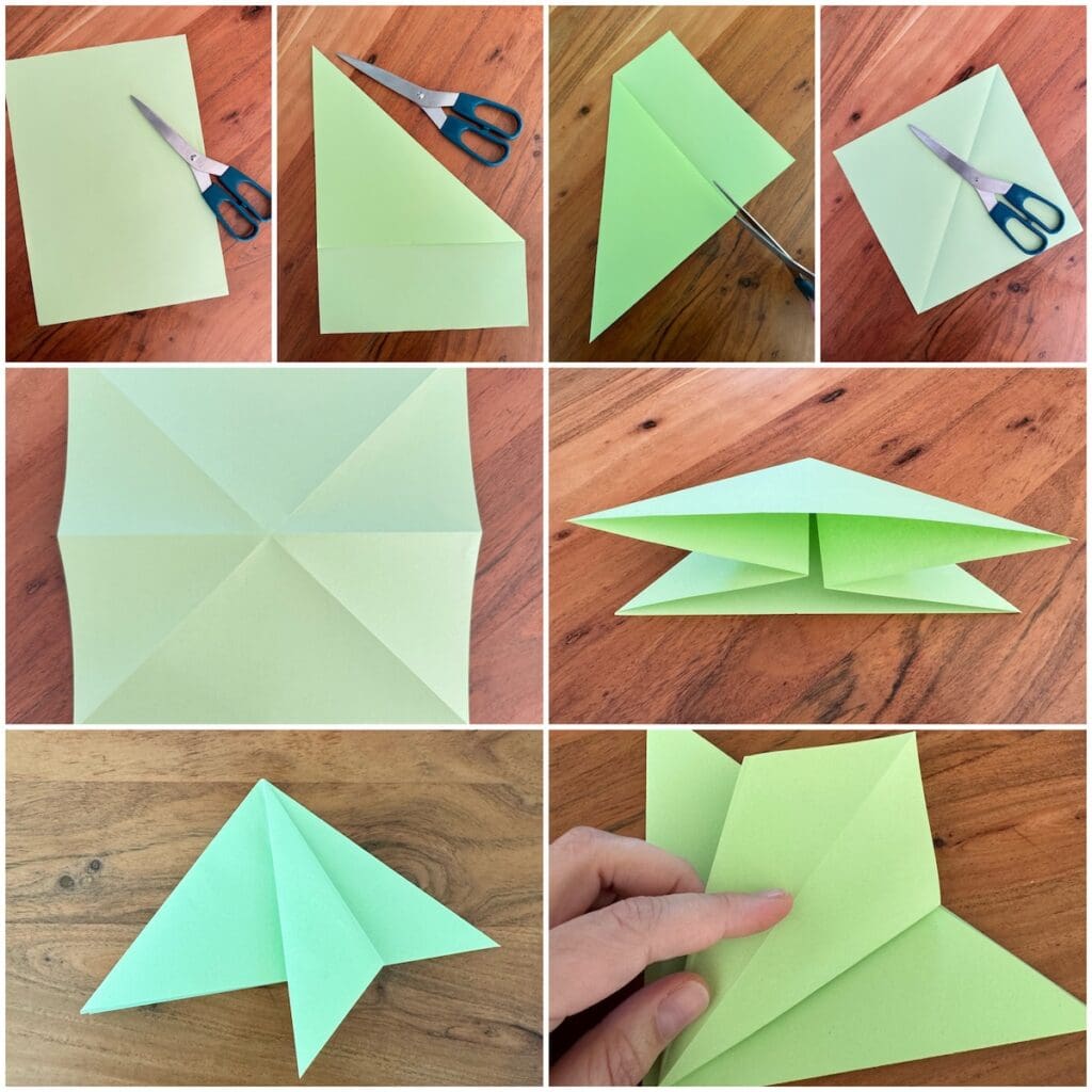 Maak kleine, gelijke knipjes aan alle zijden van de driehoek. Vouw vervolgens de puntjes langs de randen naar boven of naar beneden.