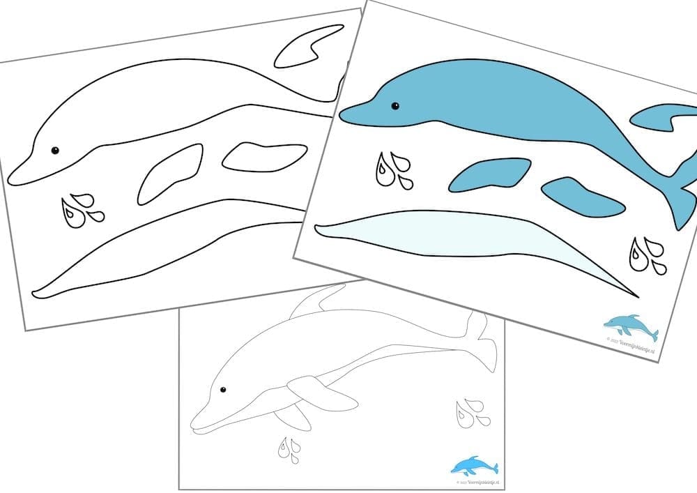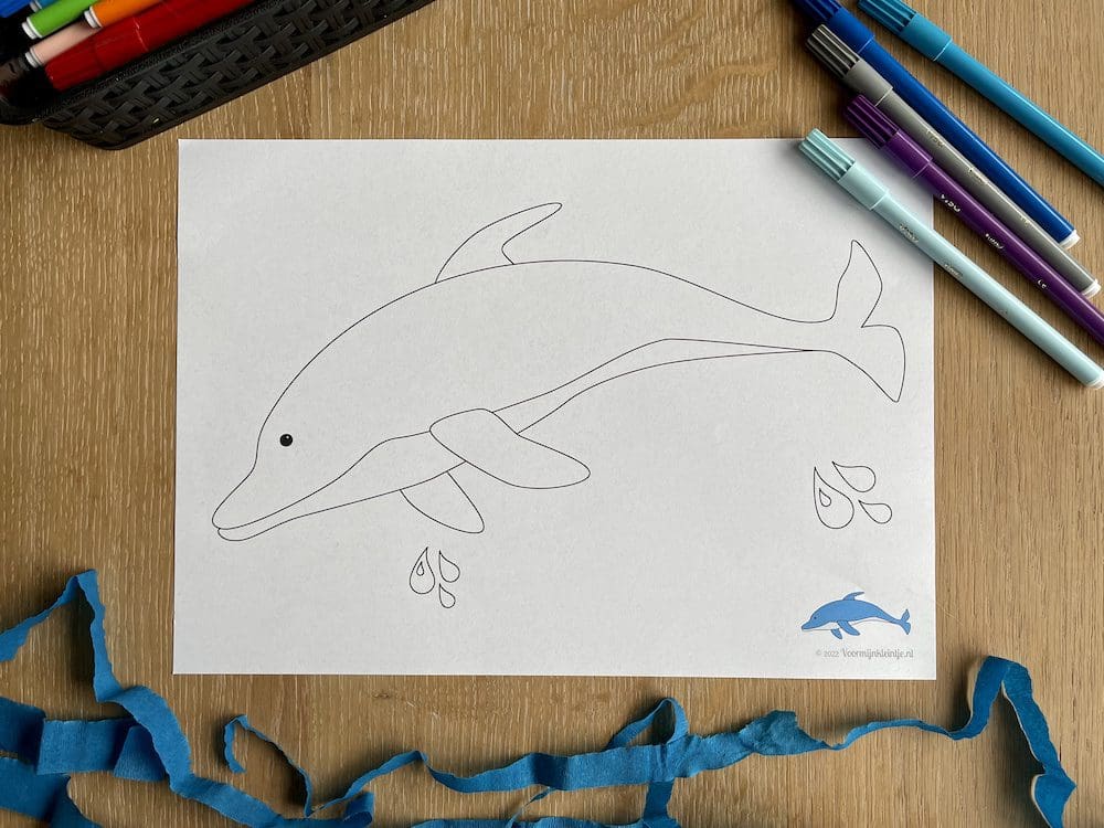 - een printable van een dolfijn om te knutselen (leeg en in kleur)