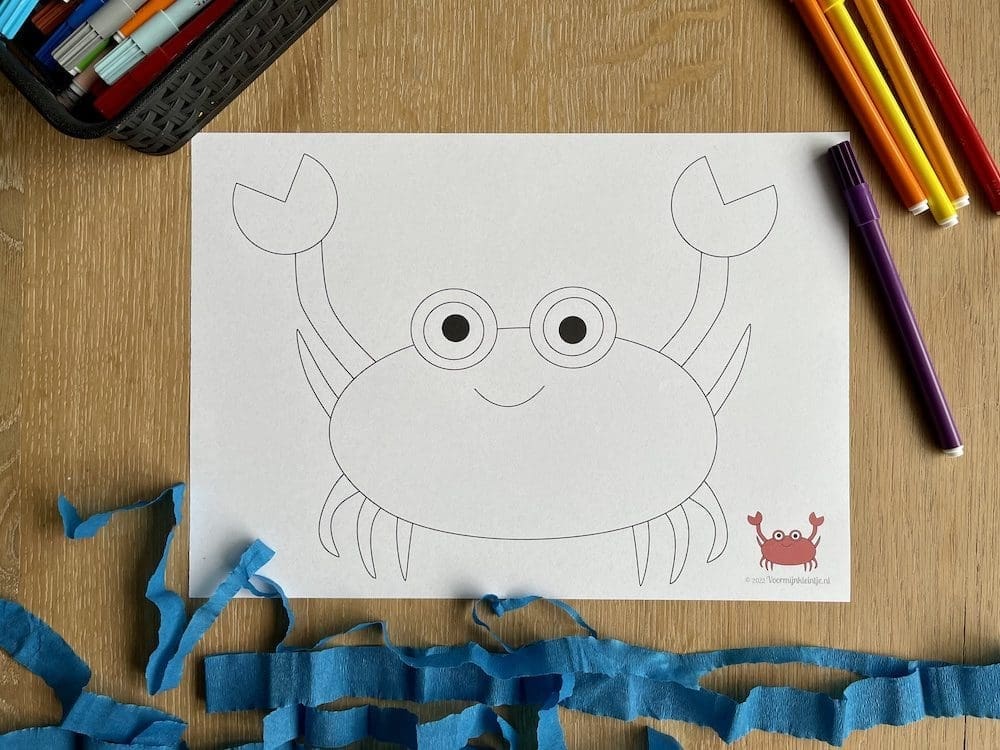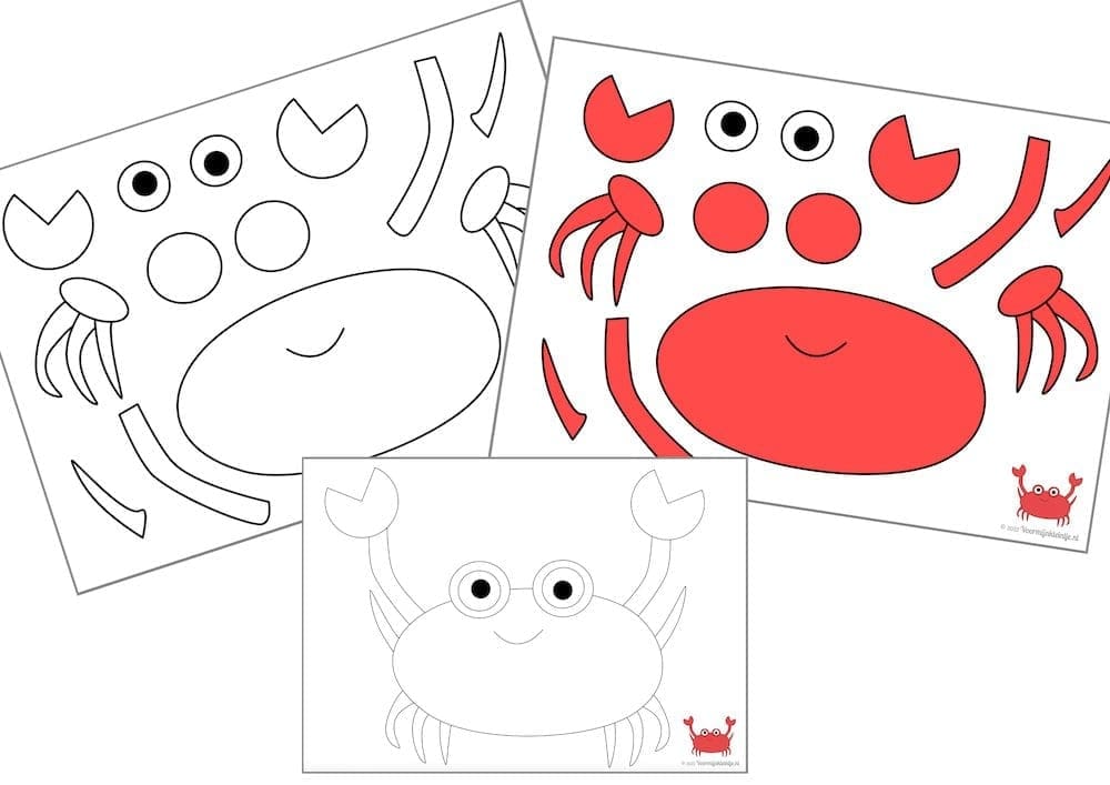 - een printable van een krab om te knutselen (leeg en in kleur)