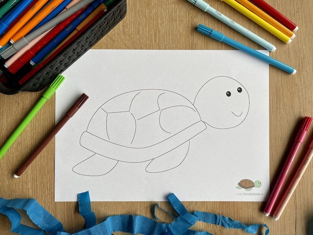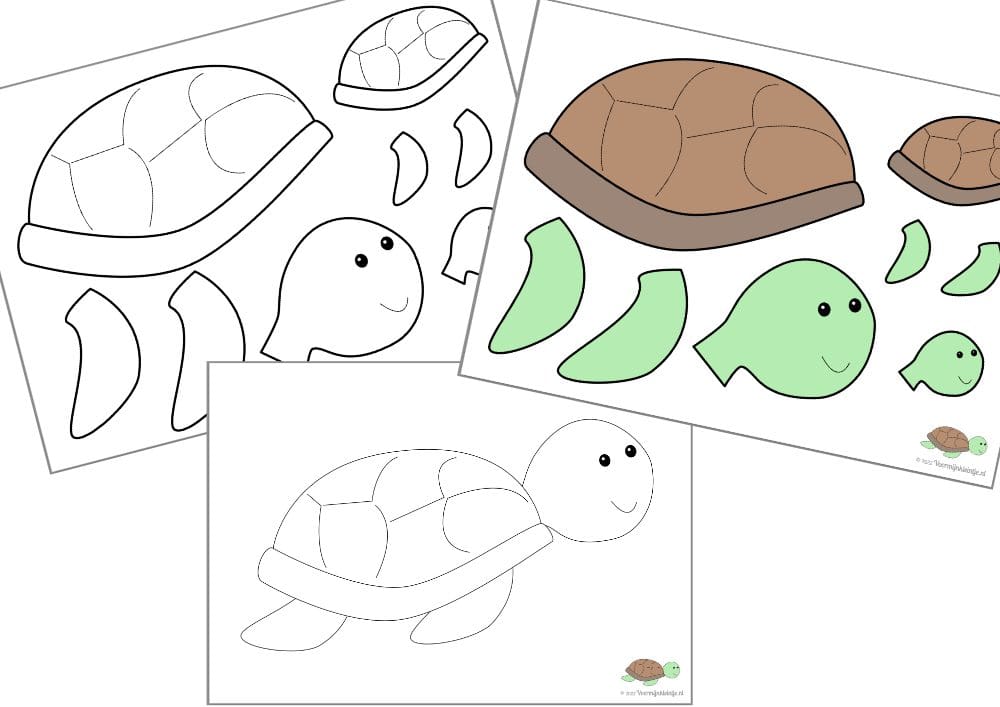 - een printable van een schildpad om te knutselen (leeg en in kleur)
