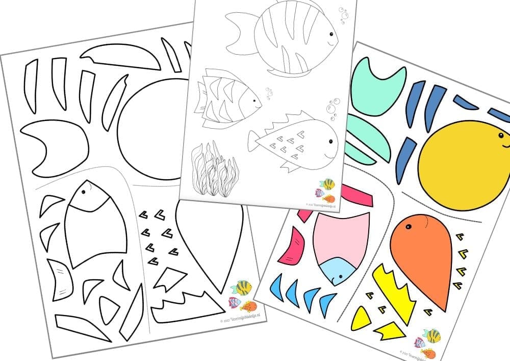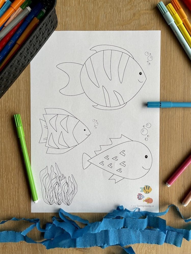- een printable van een groepje vissen om te knutselen (leeg en in kleur)