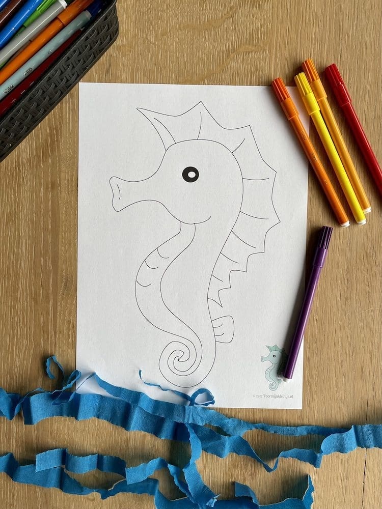 - een printable van een zeepaardje om te knutselen (leeg en in kleur)