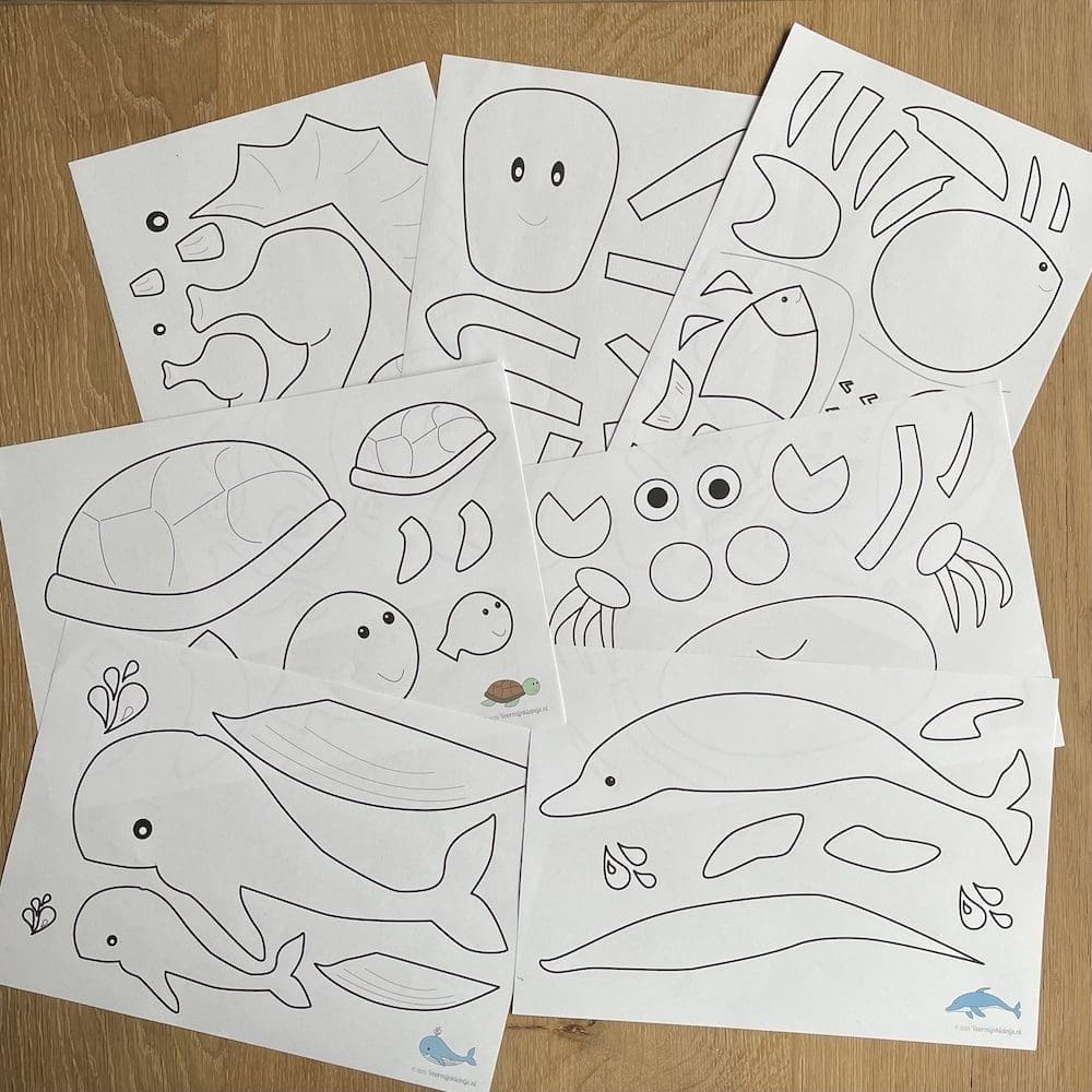 De printables bestaan uit verschillende dieren uit de onderwaterwereld. Naast het knutselen van de dieren, vind je in dit printable pakket ook een kleurplaat van ieder dier.
