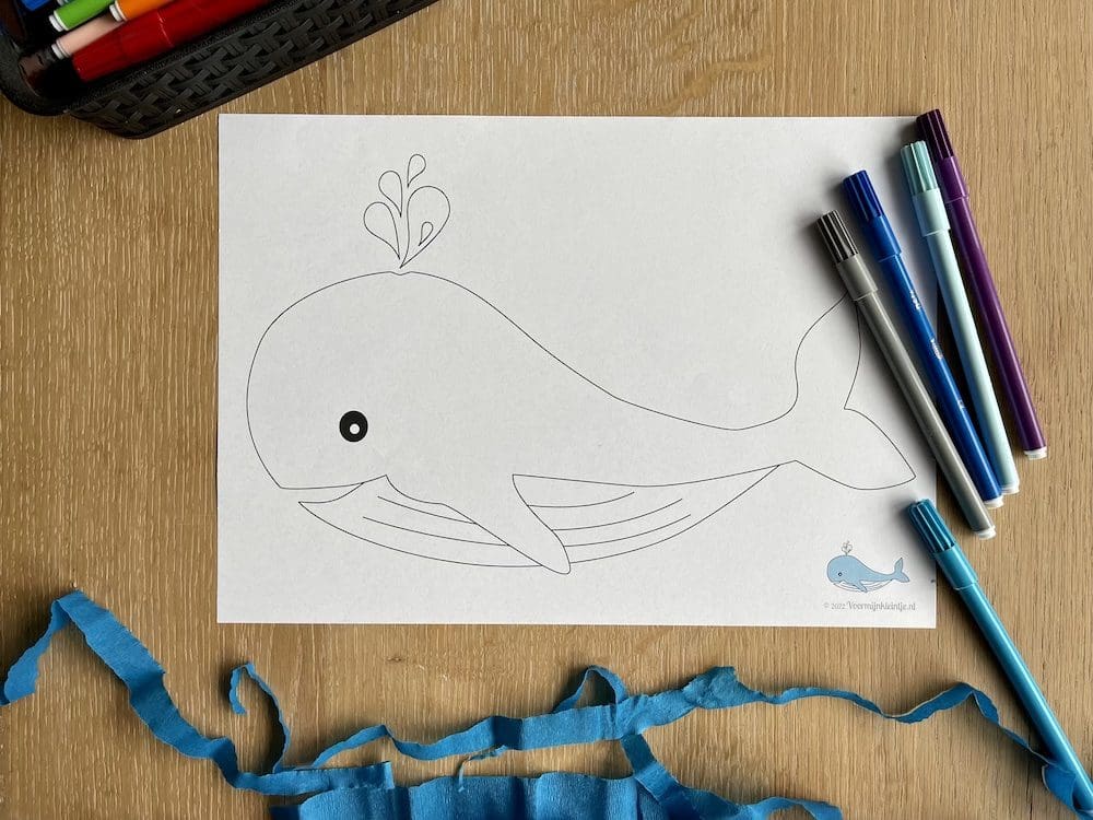- een printable van een walvis om te knutselen (leeg en in kleur)